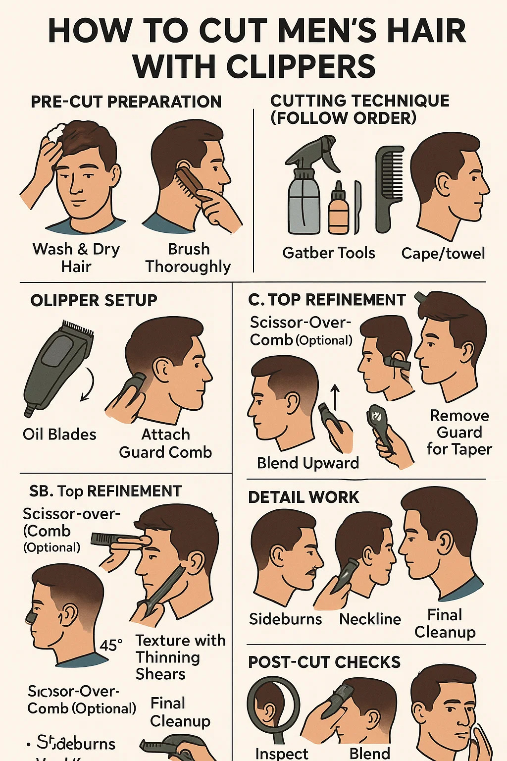 Aquí tienes una guía paso a paso para cortar el pelo de los hombres con cortapelos :